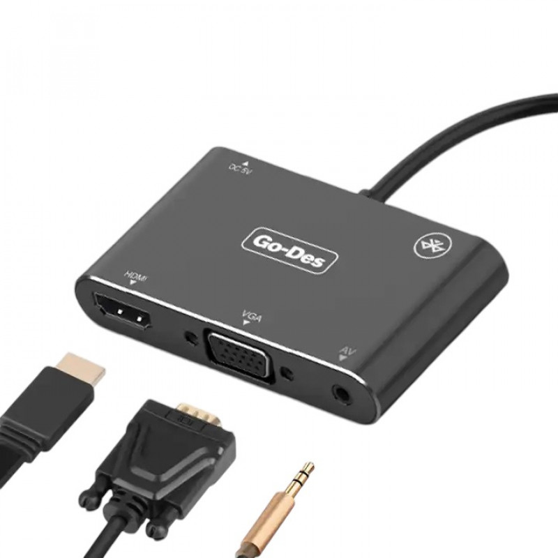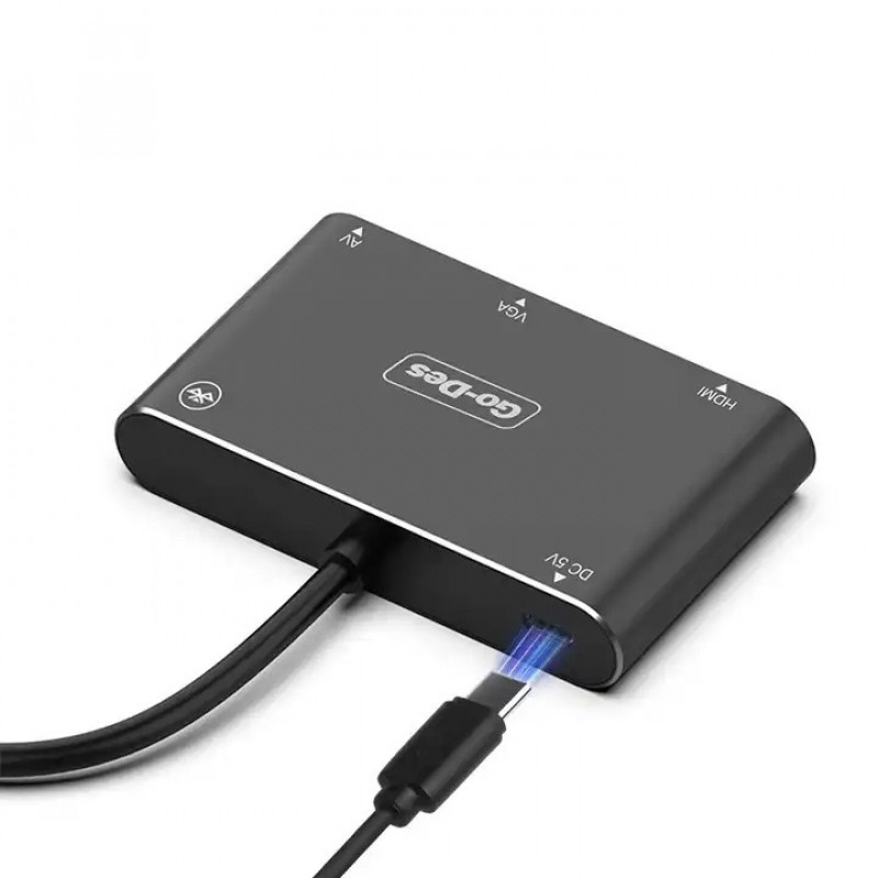 مشغل 5 في 1 من شركة Go-Des يمكنك من عرض شاشة جهازك وصفحة الويب على شاشة التلفزيون والشاشات المتوافقةالأخرى المزودة بتلفزيون .