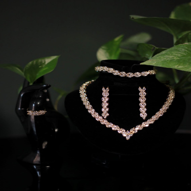 طقم زركون ذهبي جودة عاليه 4 قطع