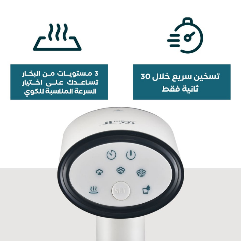 - اختر درجة الحرارة من المستويات الثلاثة للبخار حسب رغبتك